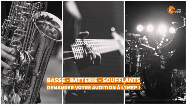 Les professeurs de l’IMEP • Paris College of Music vous accueillerons pour une dernière audition avant les vacances d’été le lundi 27 juin prochain. Tous les musiciens seront auditionnés mais les musiciens soufflants, batteurs et bassistes seront prioritaires.