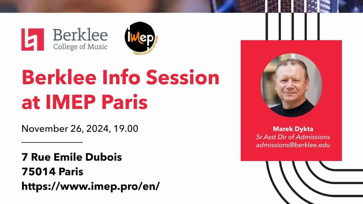 As part of this event, Marek Dykta, Assistant Director of Admissions, will be present at the IMEP to lead an info session. This is an essential moment for all musicians considering pursuing their career at Berklee. Marek Dykta will share valuable advice on the admissions process, the expectations of the juries and the opportunities offered by the college. His presence allows prospective applicants to get first-hand information and ask any questions they may have about life at Berklee.