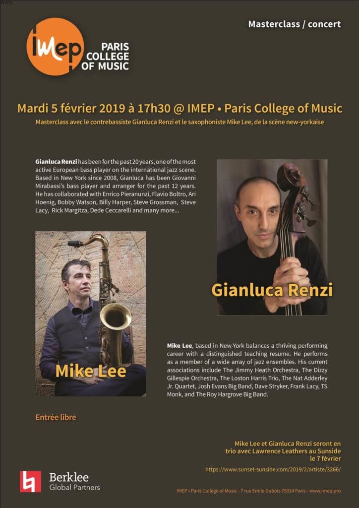 Mardi 5 février 2019 à 17h30 à l’IMEP • Paris College of Music