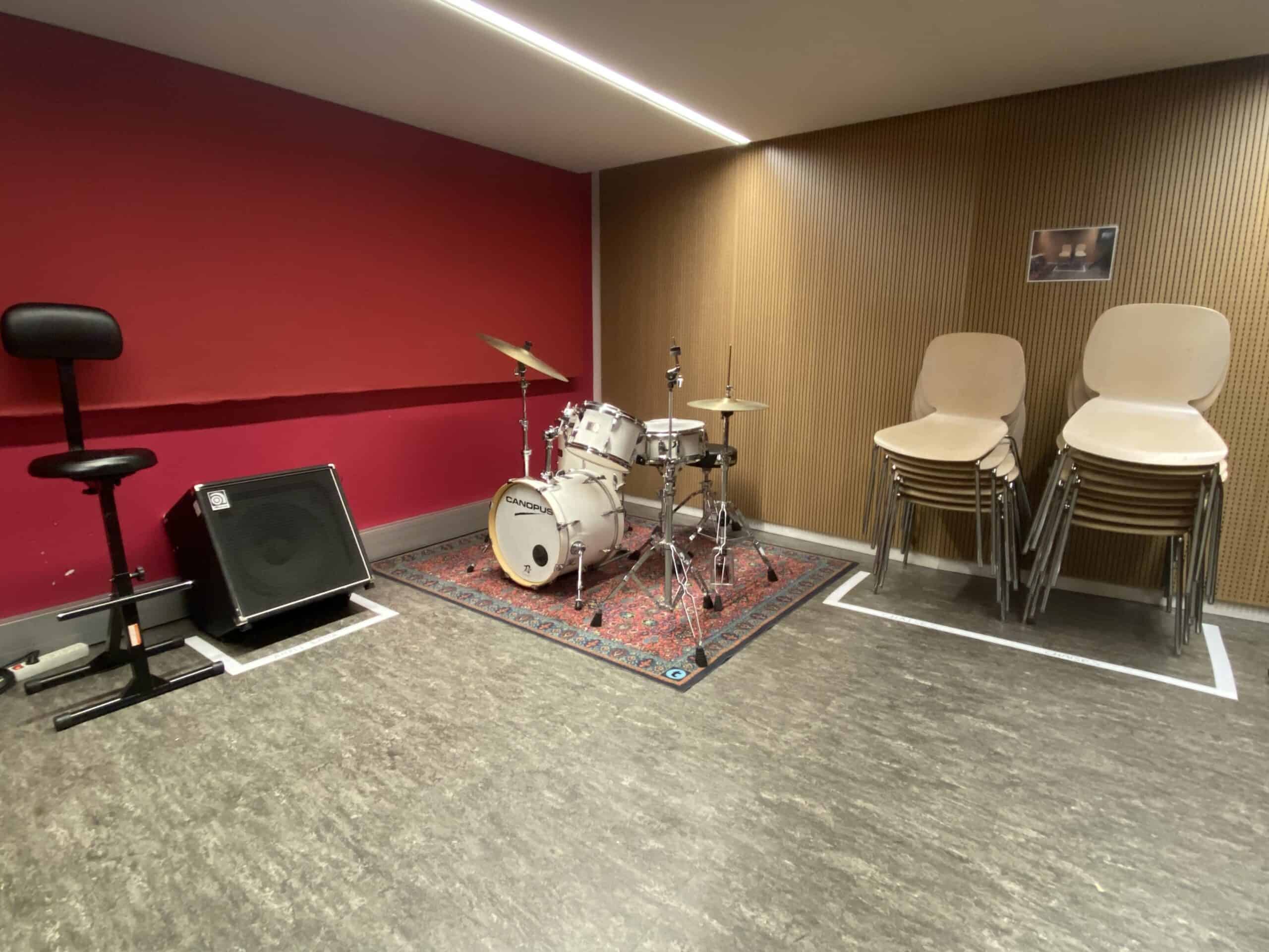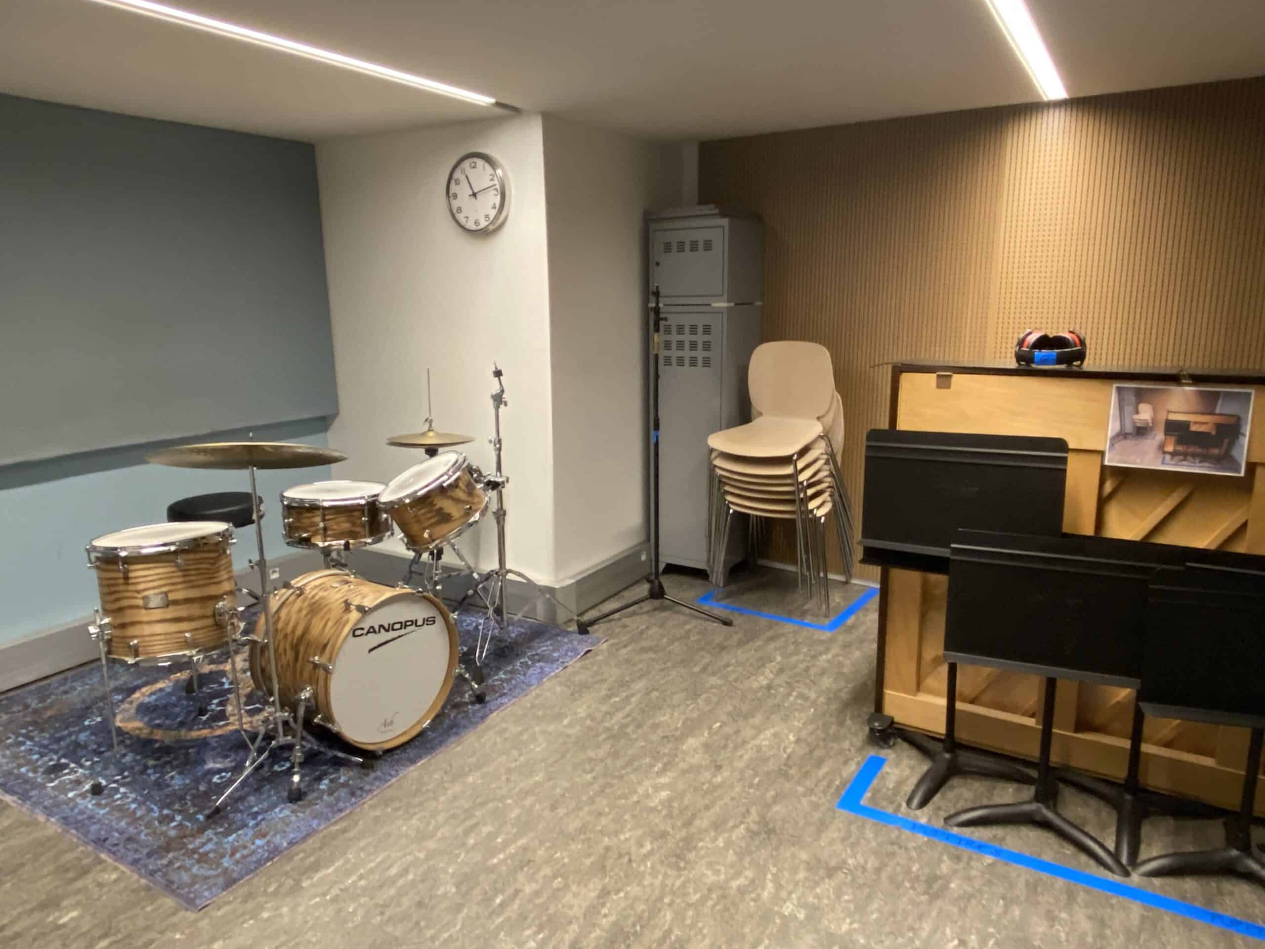 A few new features at the start of the new school year: the drum mats have been changed and the rooms have been colour-coded to make them easier to store.
