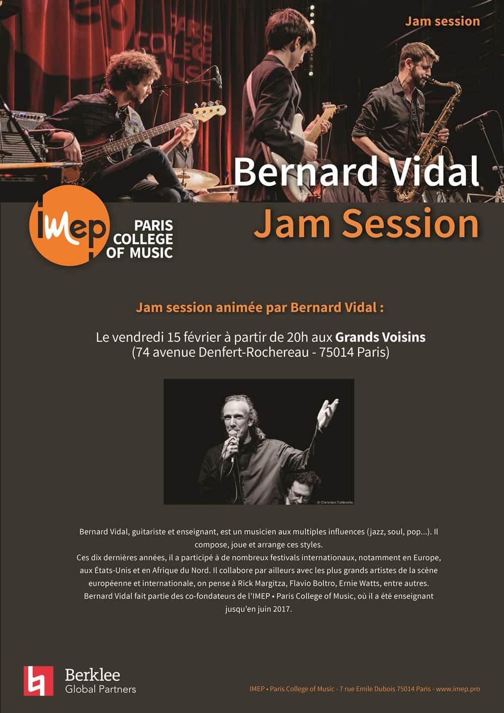 Bernard Vidal fait partie des co-fondateurs de l’IMEP • Paris College of Music, où il a été enseignant jusqu’en juin 2017.
