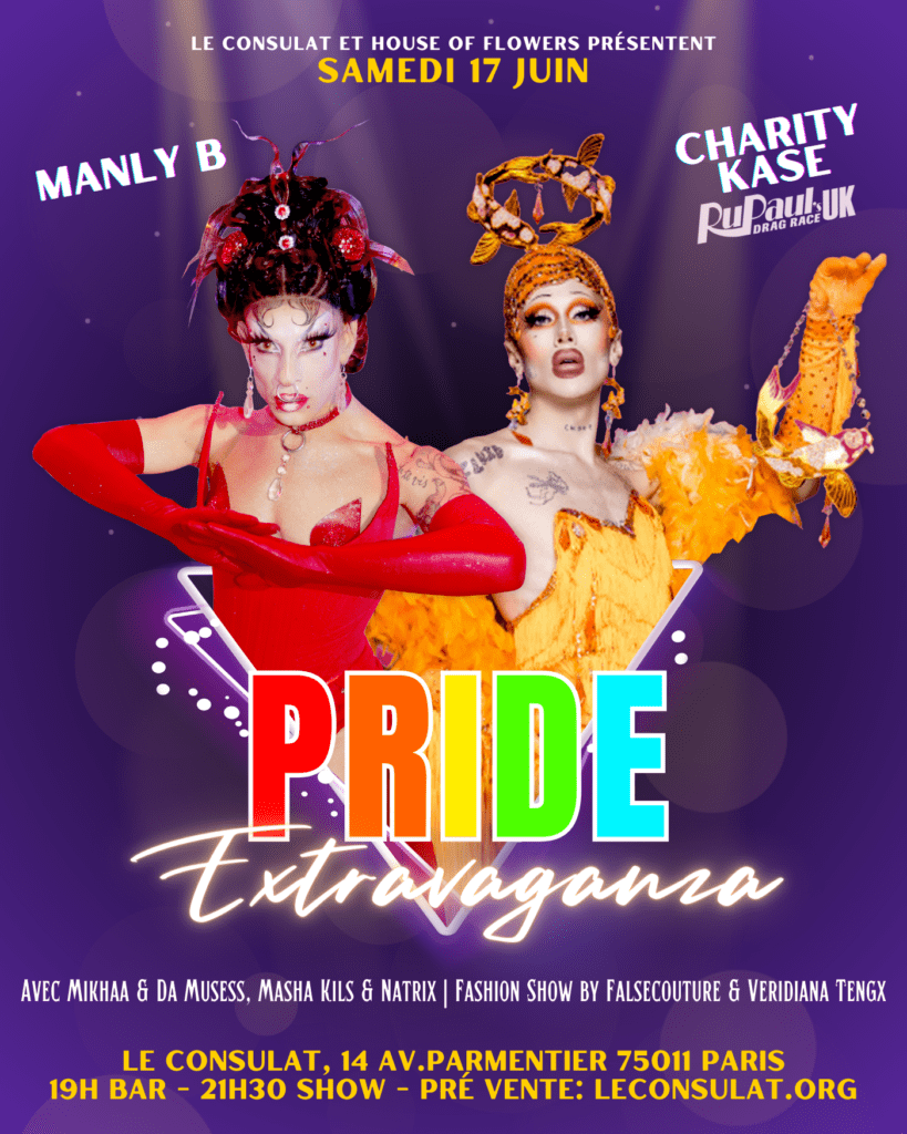 Retrouvez le programme de la soirée en intégralité sur : https://www.leconsulat.org/events/pride-extravaganza-par-manly-b/