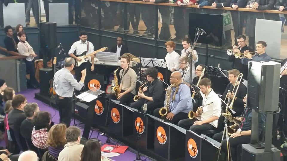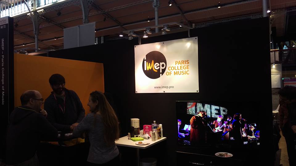 Cette année encore, l’IMEP Paris College of Music était présente sur le salon Musicora. Professeurs et élèves se sont relayés sur le stand durant les trois jours du salon pour répondre aux questions des visiteurs; des personnes intéressées par nos formations, des professionnels, mais aussi des anciens élèves (parfois très anciens!) qui nous ont revus avec plaisir. Chacun a pu poser ses questions et recevoir des réponses en direct. Sur le stand, notre maxi TV a diffusé « non stop » des extraits de concerts et d’interviews d’élèves, de professeurs, et d’invités de marque, avec audio accessible au casque. Toutefois, le point fort de ces trois jours fut incontestablement la prestation très suivie de notre big band dans un répertoire particulièrement éclectique, produit et dirigé par nos meilleurs étudiants de la promotion 2015! Ce fut également l’occasion de présenter officiellement nos nouveautés : nouveau nom et nouveau visuel, mais surtout nouveaux programmes, et déménagement programmé pour la rentrée de septembre 2016 (informations sur le sujet, à venir très prochainement dans cet espace!). Merci à tous les participants qui ont permis de faire de cette édition 2016 un grand cru!