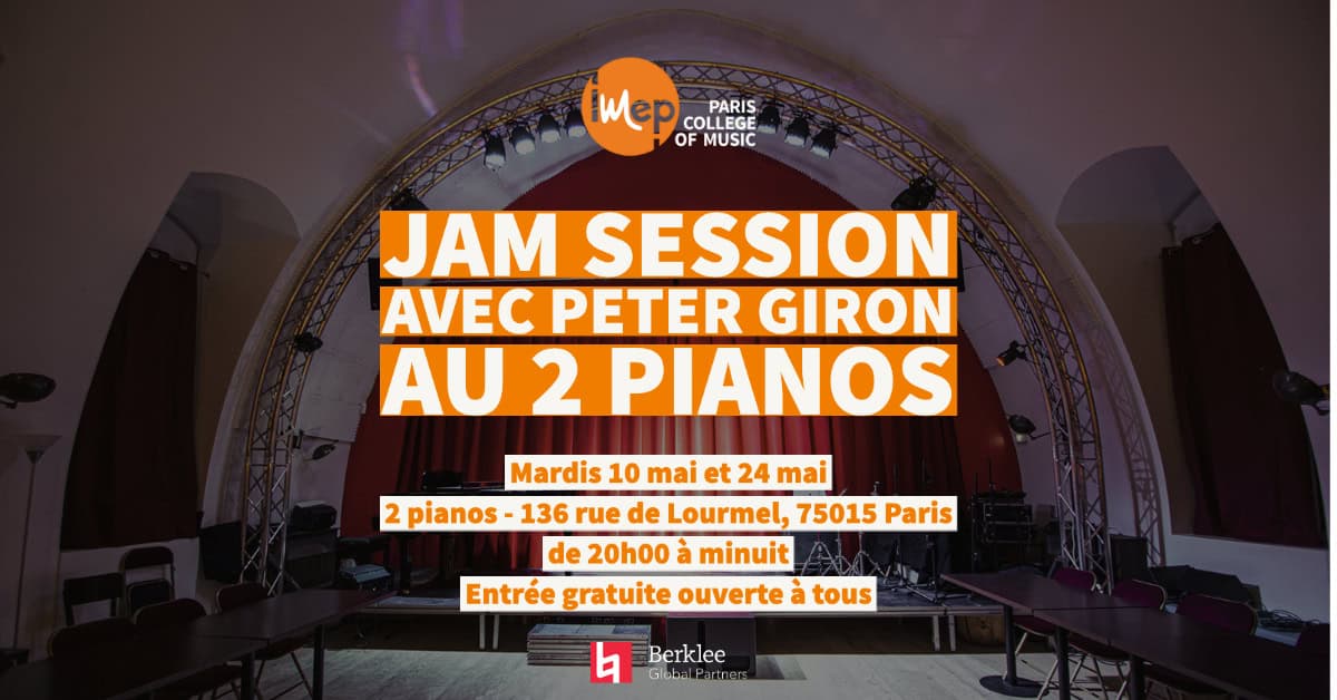 Les élèves de 4ème année de Cycle Professionnel de l’IMEP • Paris College of Music vous donnent rendez-vous les mardis 10 et 24 mai prochain au restaurant Les 2 pianos pour une jam session animée par Peter Giron !