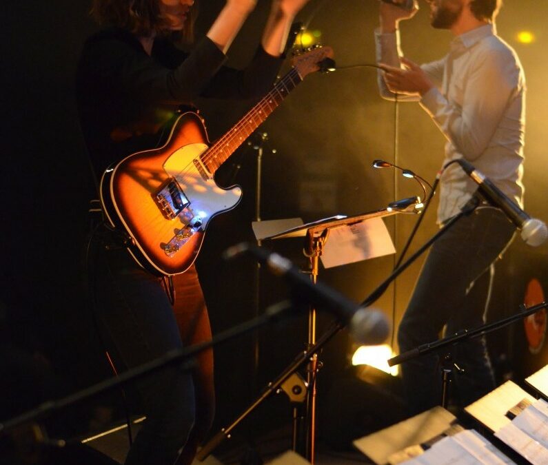 Devant le big band, Juliette Heilmann, Paul Braillard, chant. Remise de diplôme de l’IMEP mars 2016