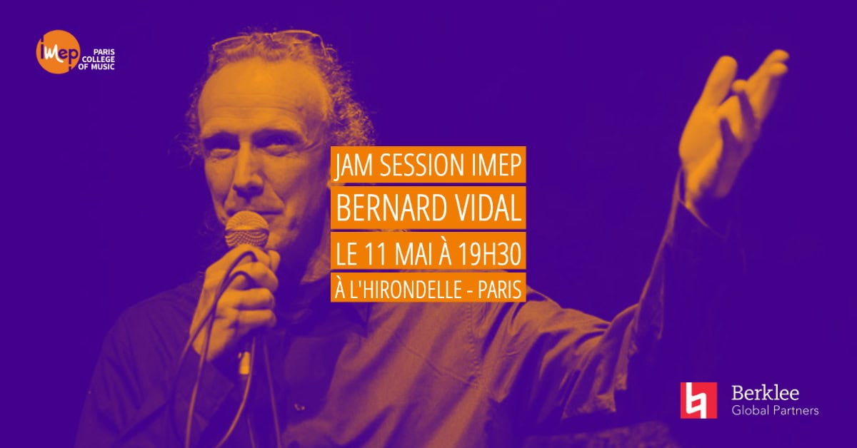 Bernard Vidal, cofondateur de l’IMEP • Paris College of Music, animera une Jam Session le 11 mai prochain en plein cœur de Paris, au bar l’Hirondelle. Une soirée IMEP à ne pas manquer !