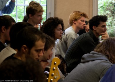 C’est un genre de cours magistral donné par des professionnels à la suite duquel s’instaure un dialogue avec les participants.  C’est une opportunité pour les élèves inscrits à l’IMEP de rencontre et échanger avec des professionnels de la musique venus des différents secteurs de l’industrie musicale. (musiciens, promoteurs, diffuseurs, artistes, instrumentistes, professeurs, programmateurs…)