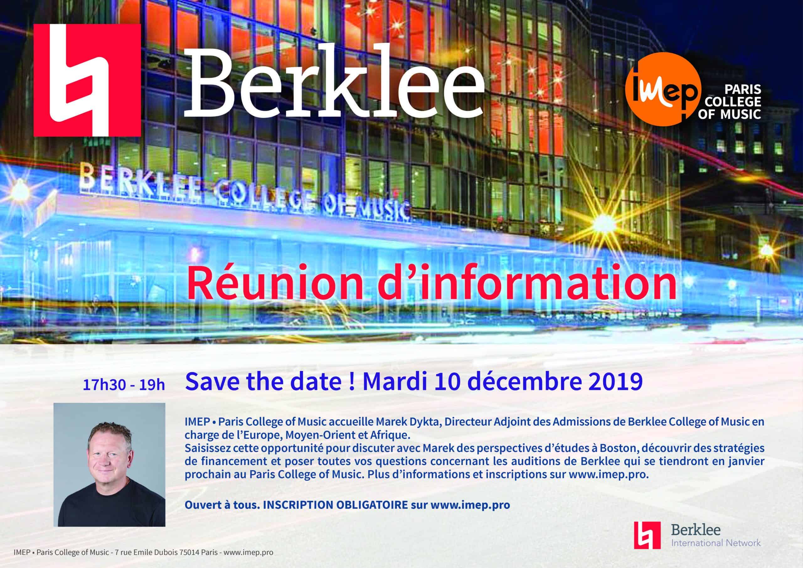 Saisissez cette opportunité pour discuter avec Marek des perspectives d’études à Boston, découvrir des stratégies de financement et poser toutes vos questions concernant les auditions de Berklee qui se tiendront en janvier prochain au Paris College of Music.